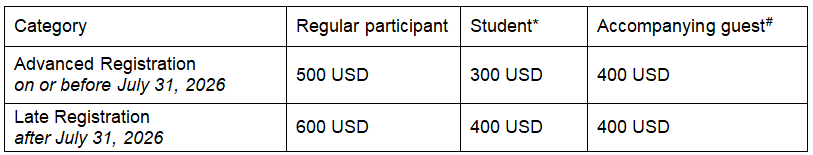 Refund Policy: Full refunds (less USD 50 administration fee, excluding bank charges) will be issued for cancellations received by August 15, 2026. A 50% refund applies for requests received by September 15, 2026. No refunds after that date.
