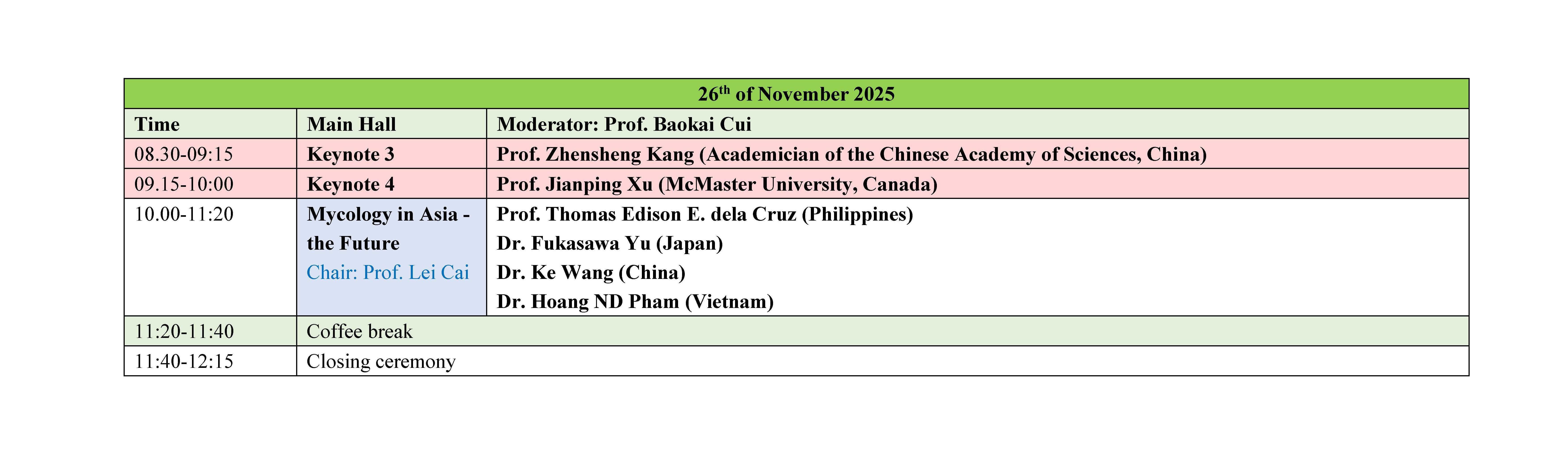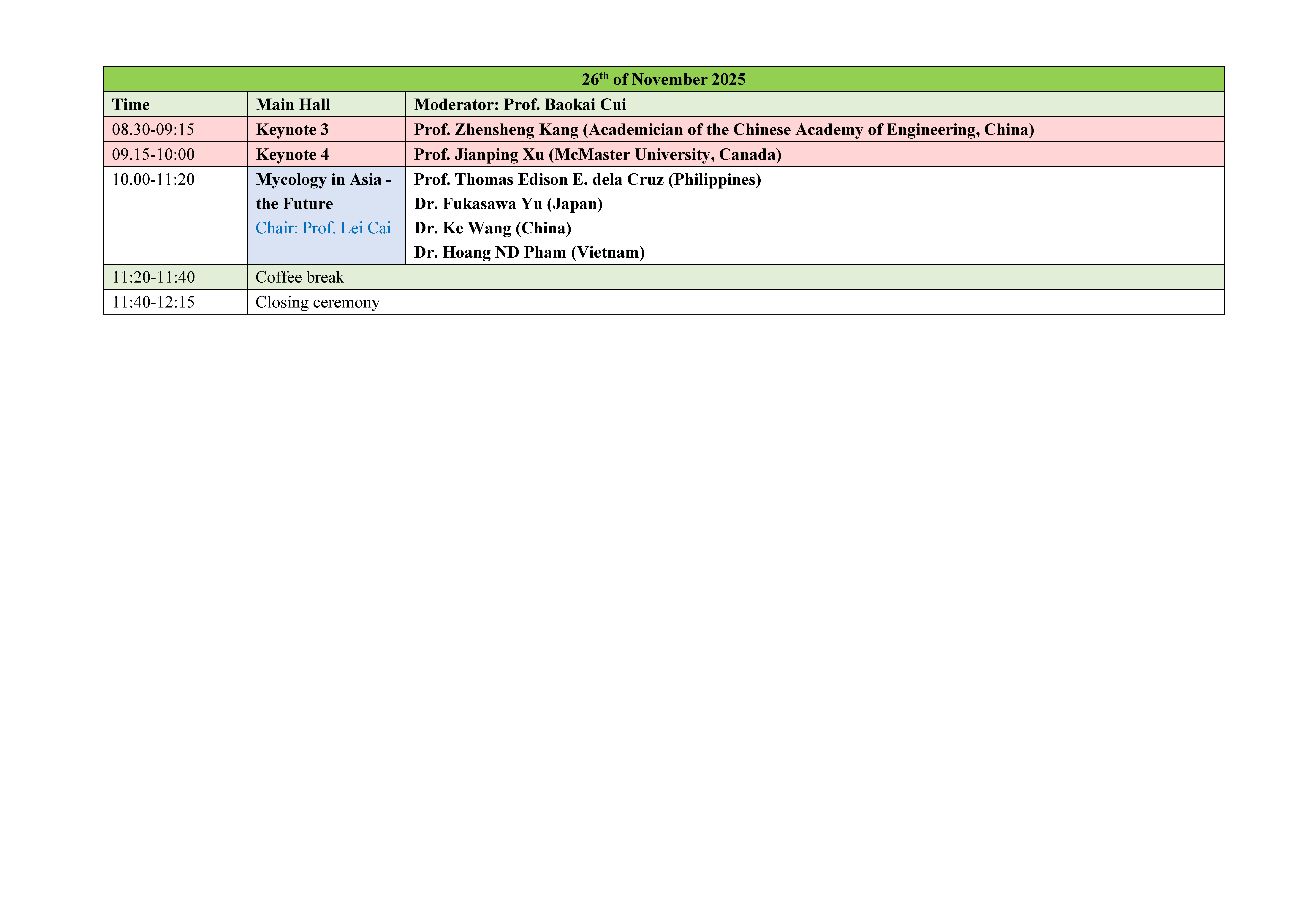 AMC 2025 will convene leading mycologists, researchers, and students from across Asia and around the world to exchange the latest advancements and insights in fungal biology, ecology, biotechnology, and their roles in promoting sustainable development. The programme comprises keynote lectures, thematic symposia, poster presentations, and networking events designed to encourage academic exchange, foster collaboration, and inspire the next generation of mycologists.